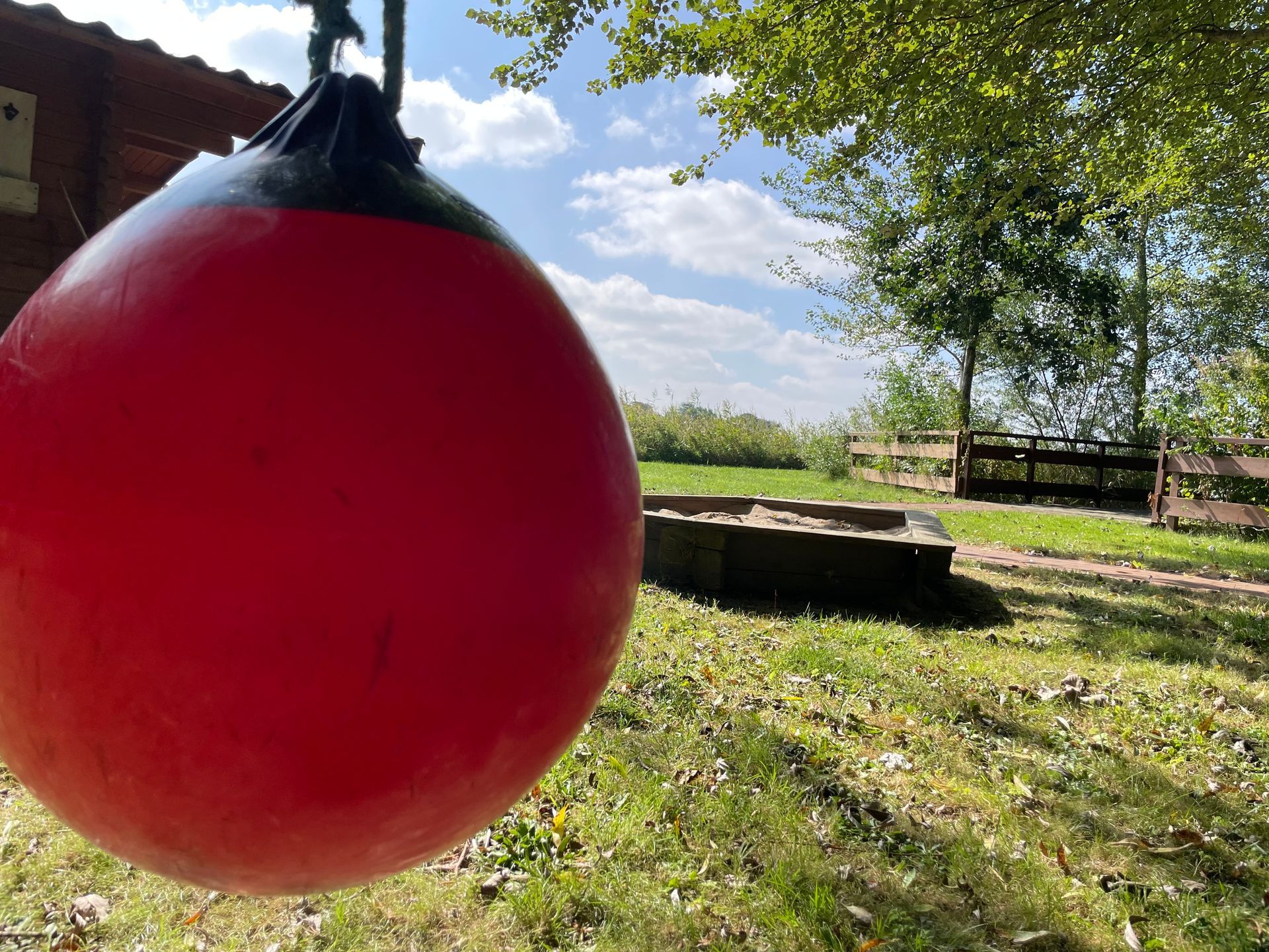 Ebenfalls ist eine Sandkiste mit Sandspielzeug vorhanden.
