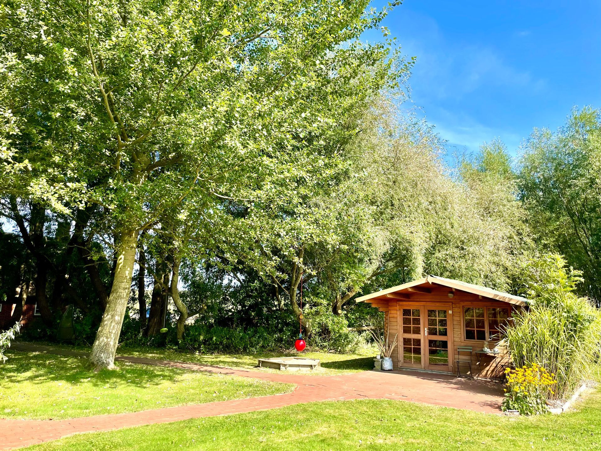 Unser großer Garten mit über 1200 m² bietet viel Platz zum Erholen, Durchatmen oder aber zum toben und spielen.